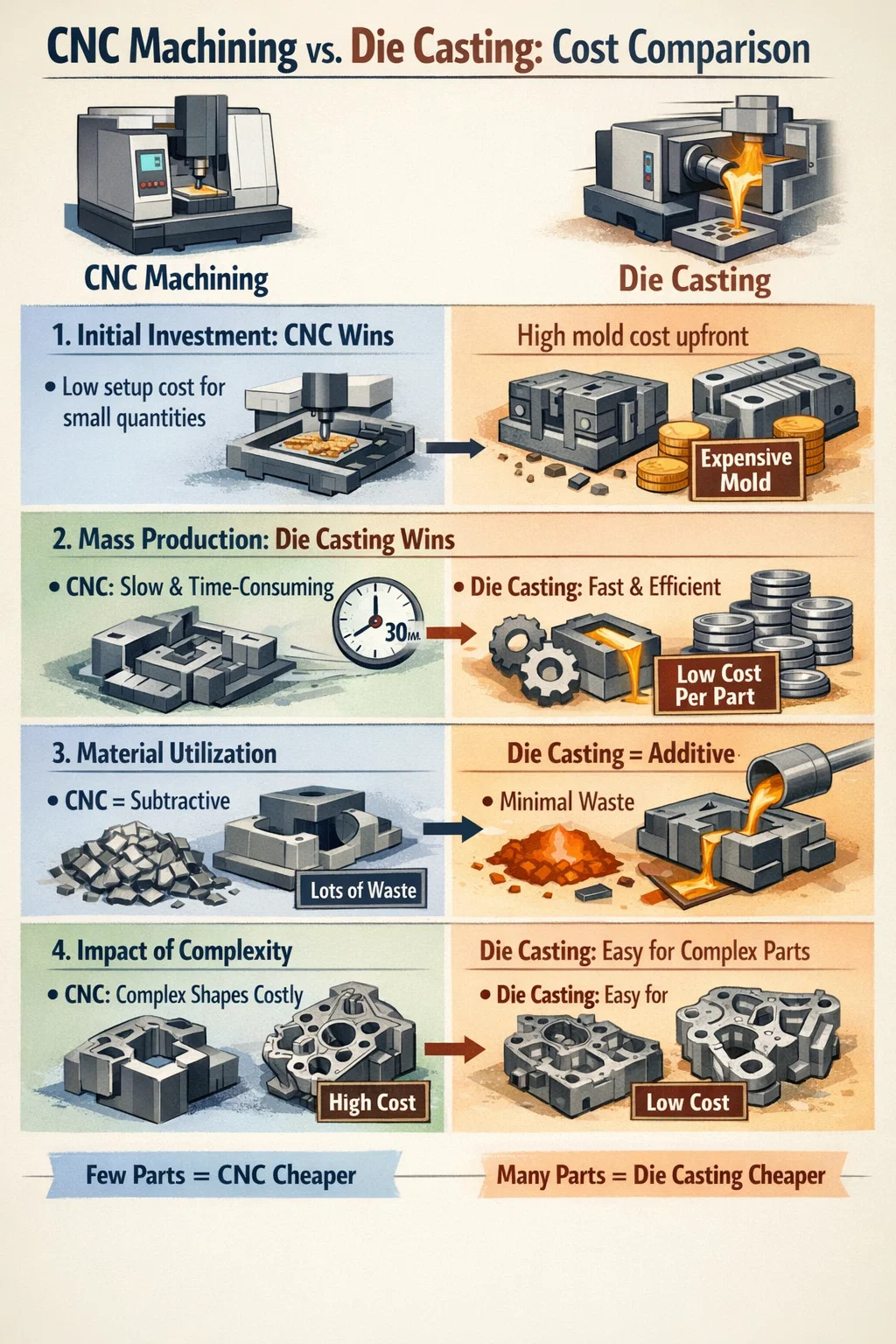 ডাই কাস্টিং বা সিএনসি মেশিনিং সস্তা কিনা সে সম্পর্কে, উত্তরটি আসলে নির্ভর করে আপনি কতগুলি অংশ তৈরি করার পরিকল্পনা করছেন তার উপর।
