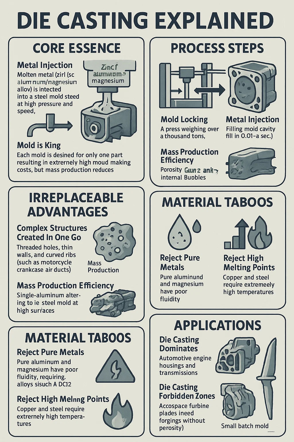খাঁটি ধাতু প্রত্যাখ্যান করা: খাঁটি অ্যালুমিনিয়াম এবং ম্যাগনেসিয়ামের দুর্বলতা কম থাকে, যার জন্য অ্যালো প্রয়োজন হয় (যেমন 10% সিলিকন সহ এডিসি 12 অ্যালুমিনিয়াম)।